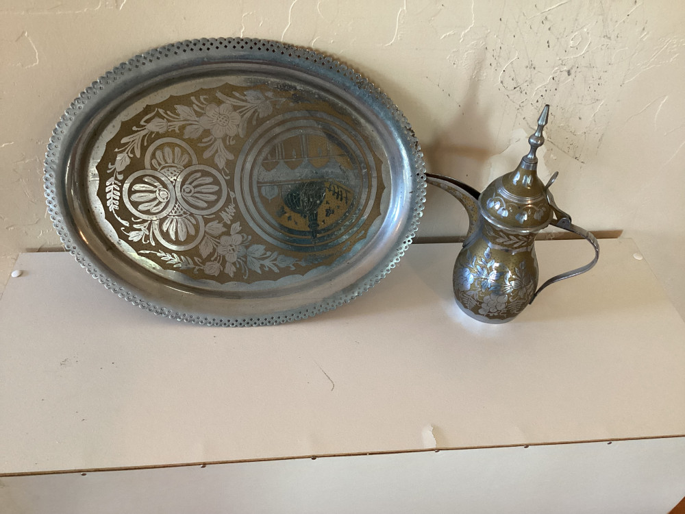 Vintage Tea Pot & Tray (#16) Downsizing Auction; Nida, OK