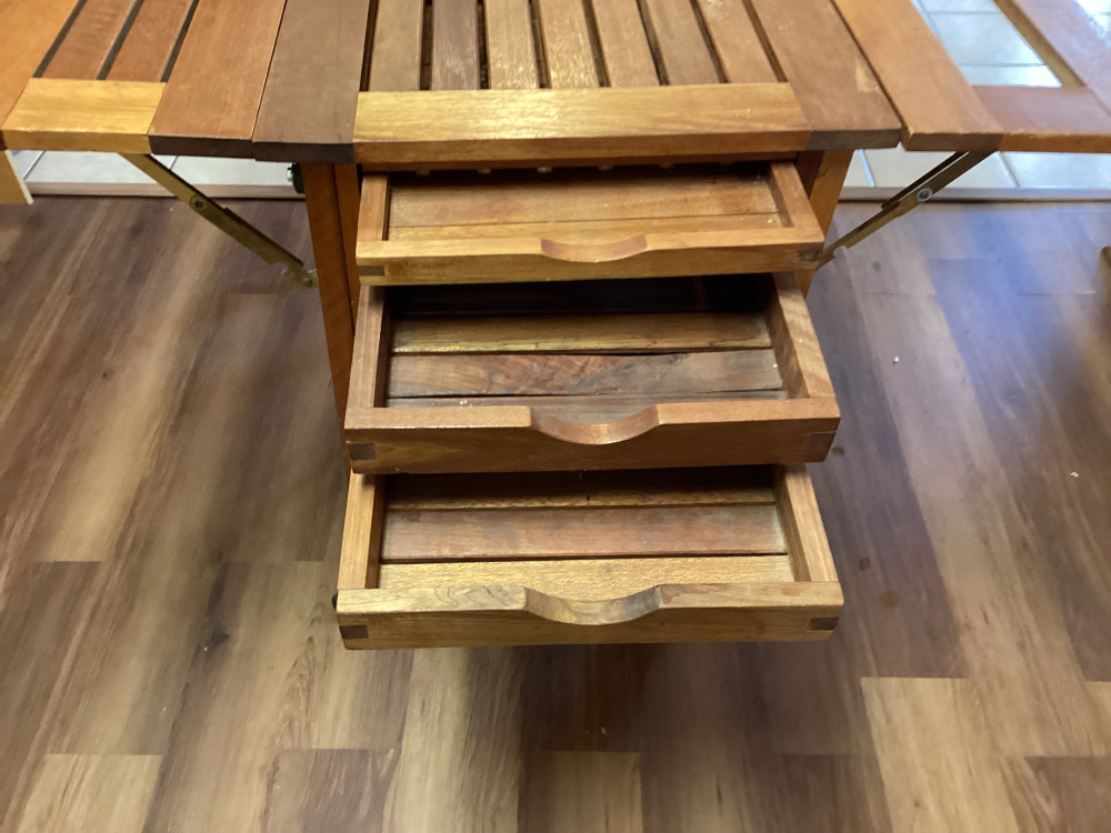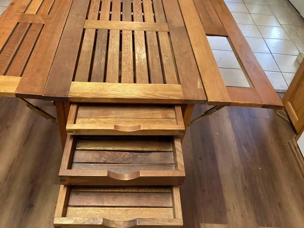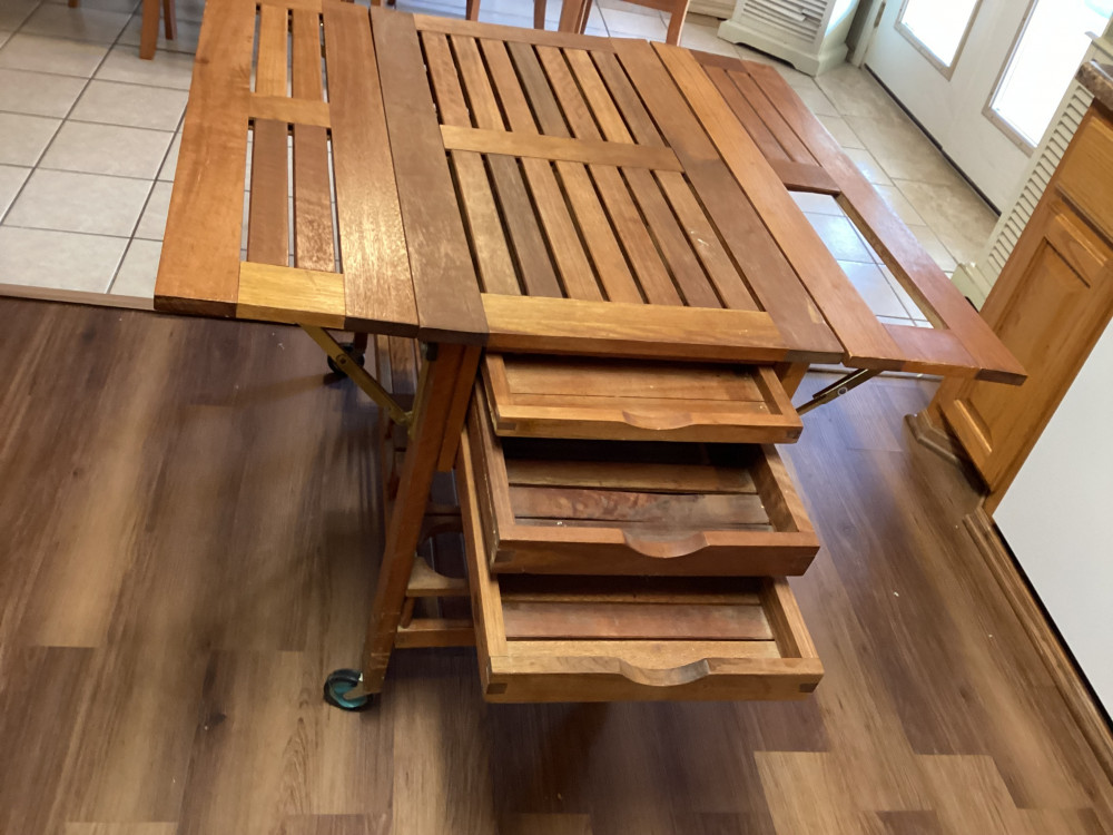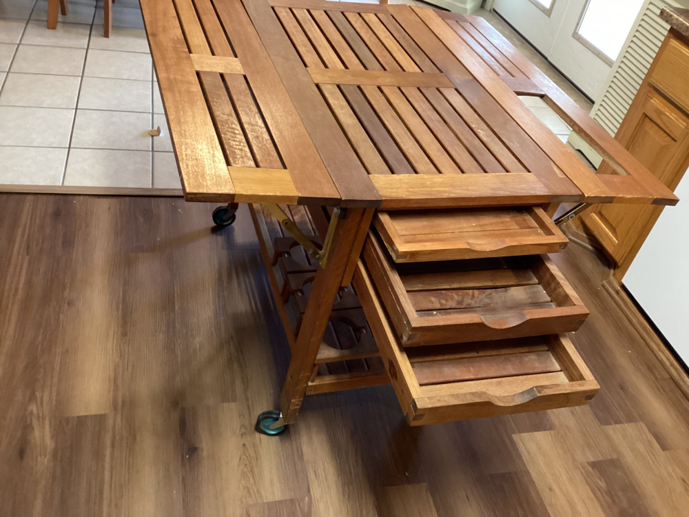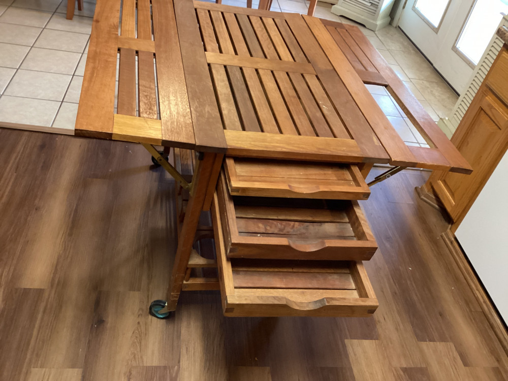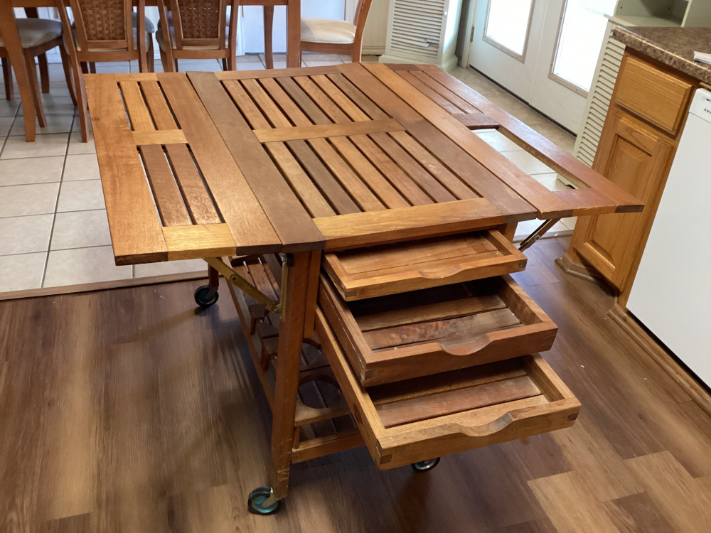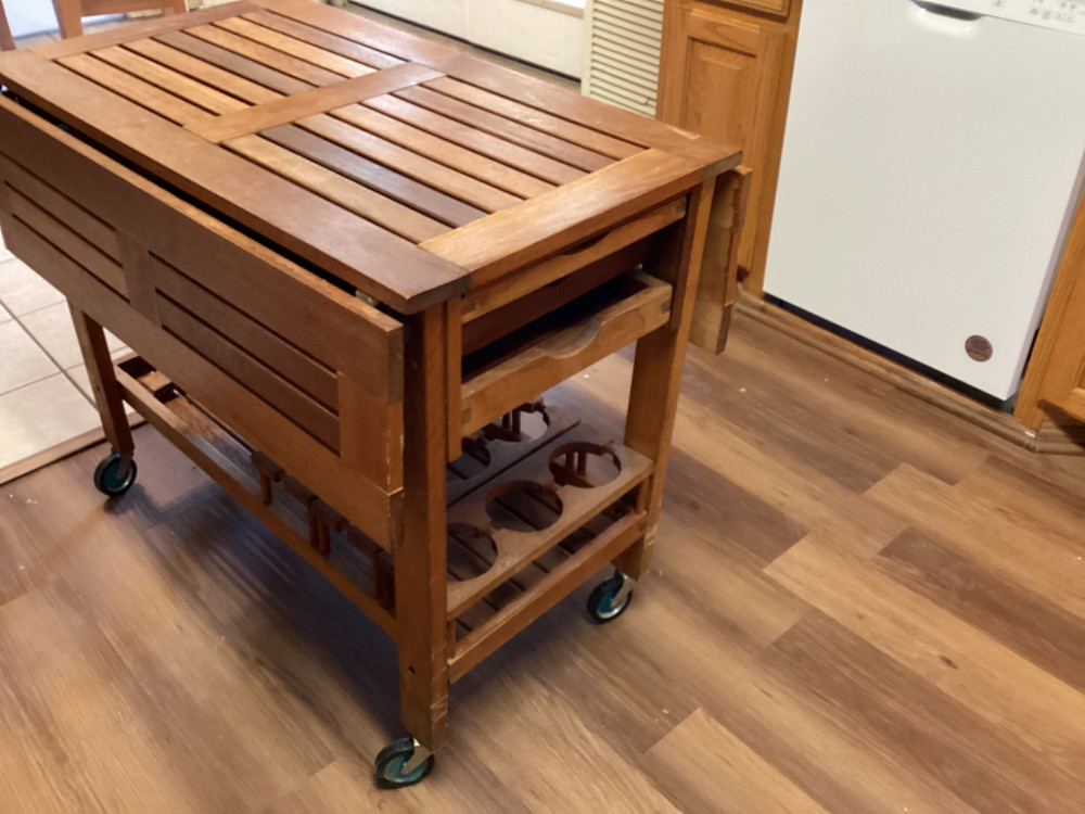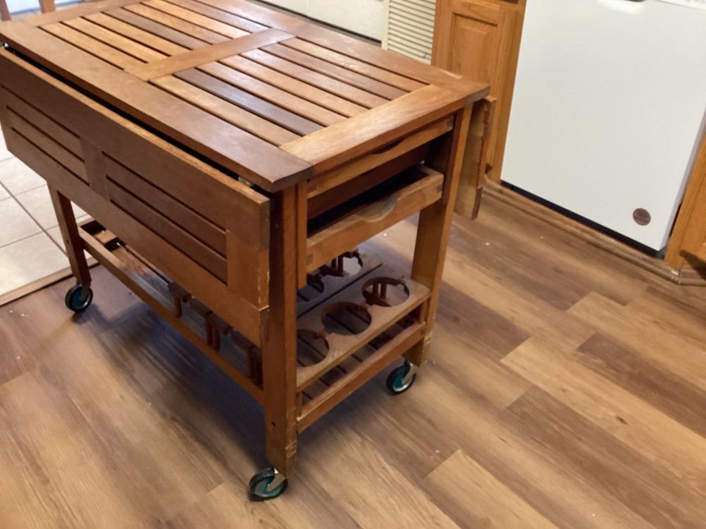 Wood Top Serving Table (#81) Downsizing Auction; Nida, OK
