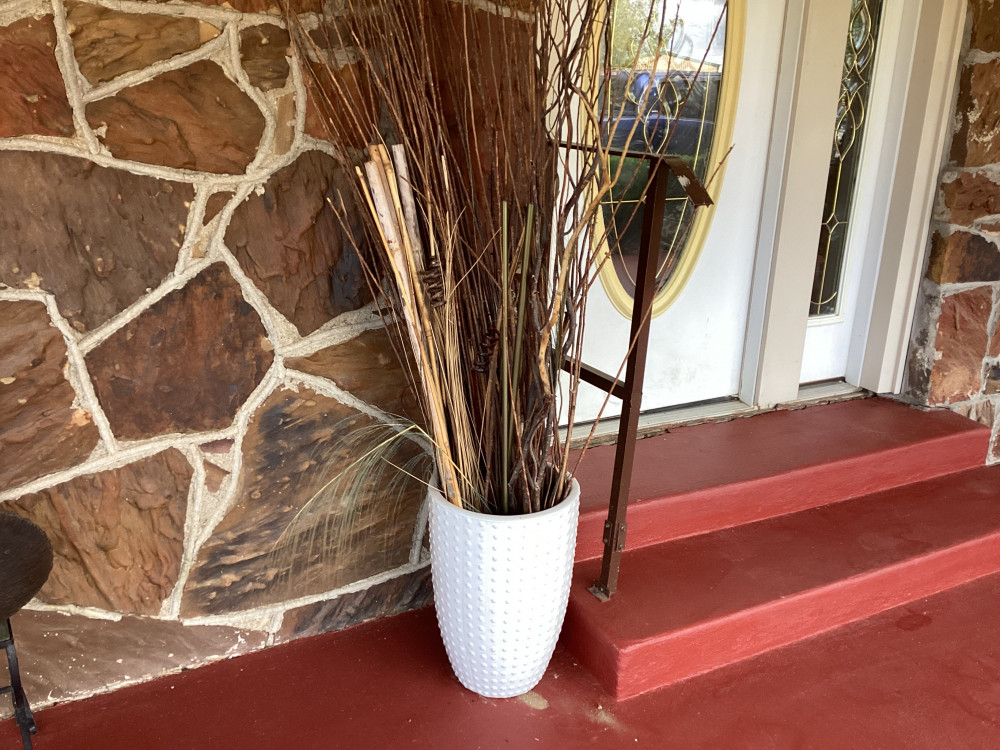 white vase with decorative twigs