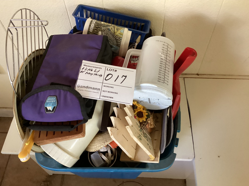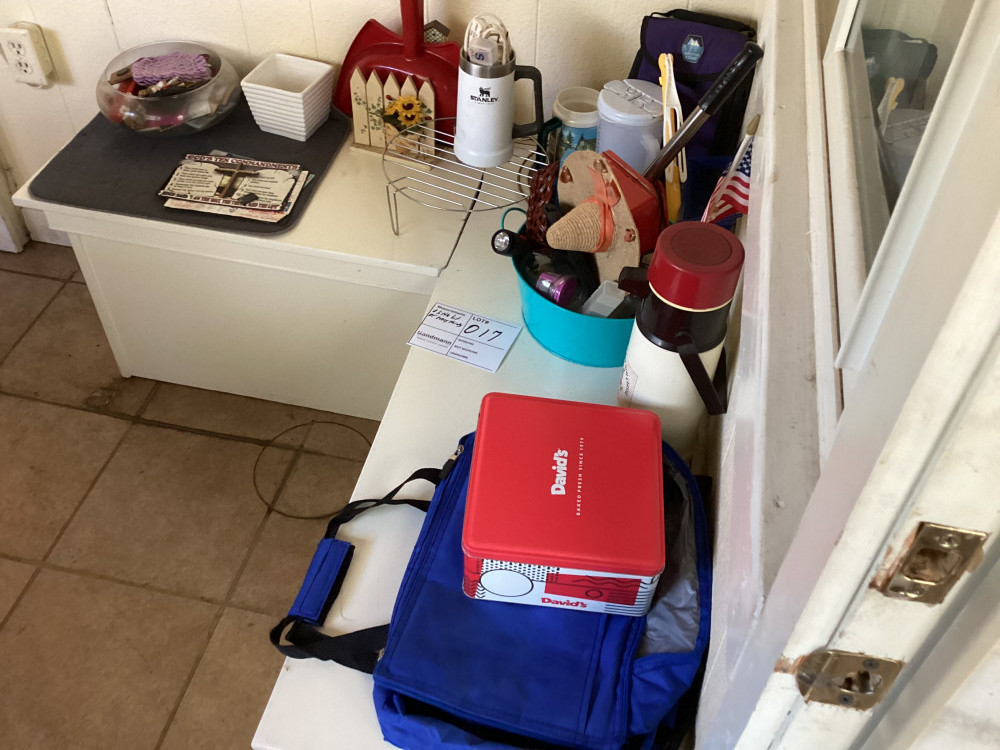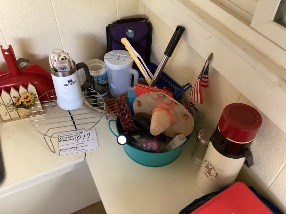 stanley cup, bowl, lunch bag, wire rack. cup, little flag, dust pan, and more. everything pictured