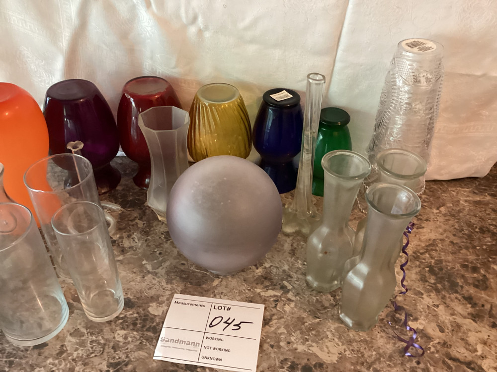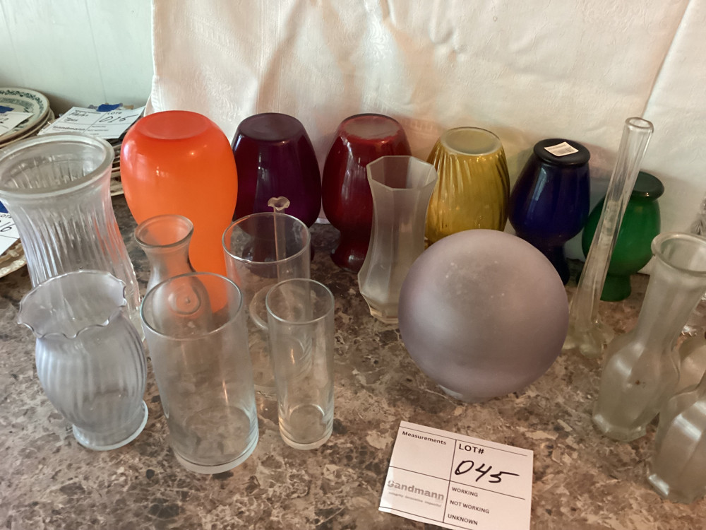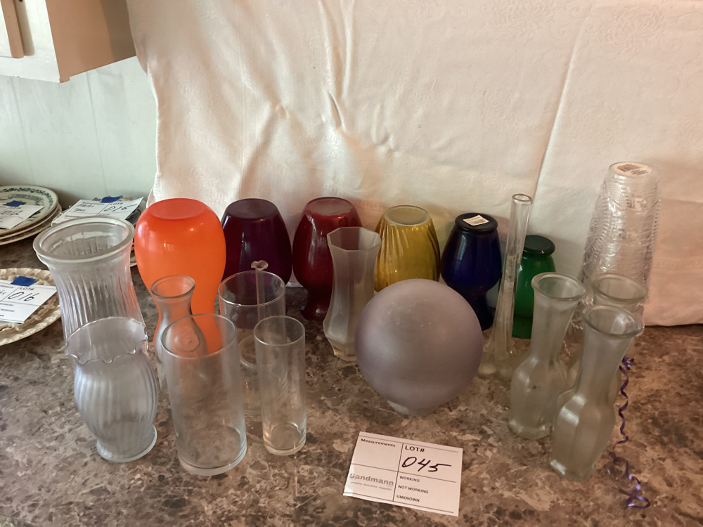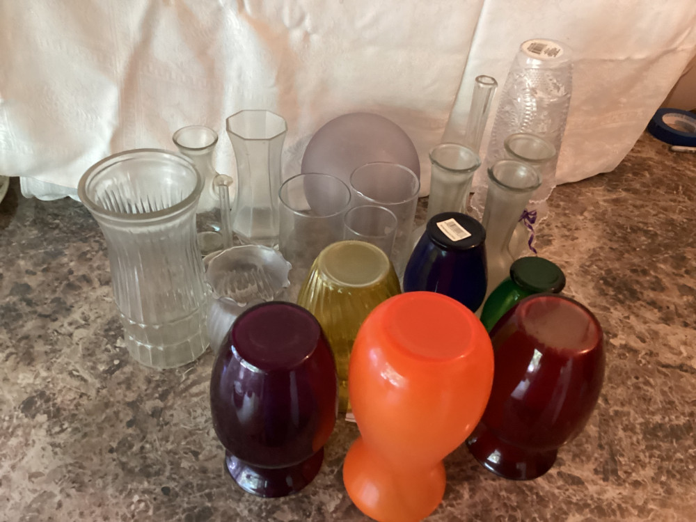 glass flower vases, some colored,all different sizes
