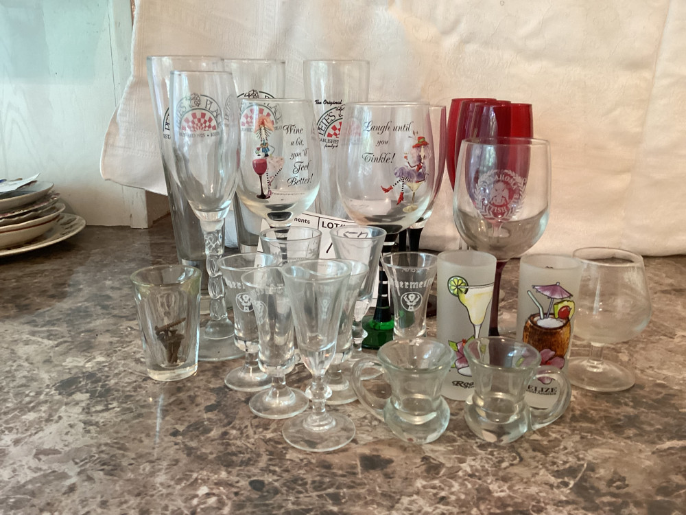 assortment of shot glasses and wine glasses