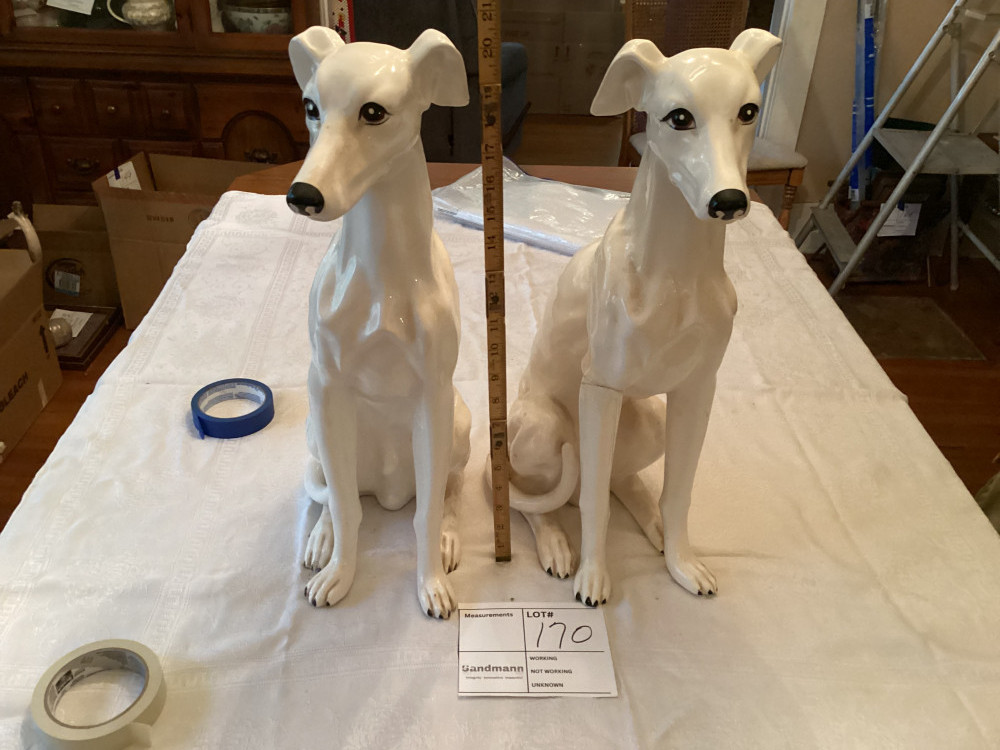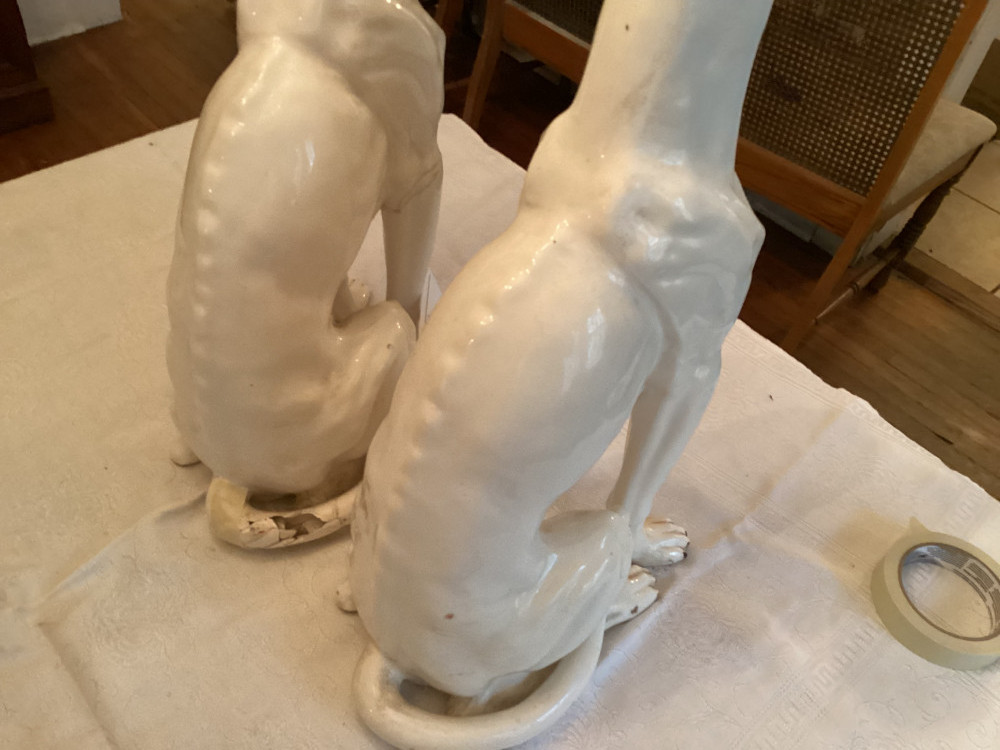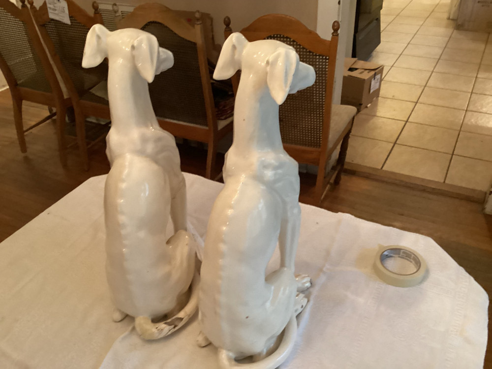 two white dog statues