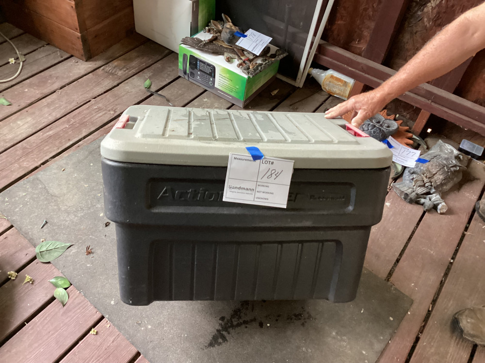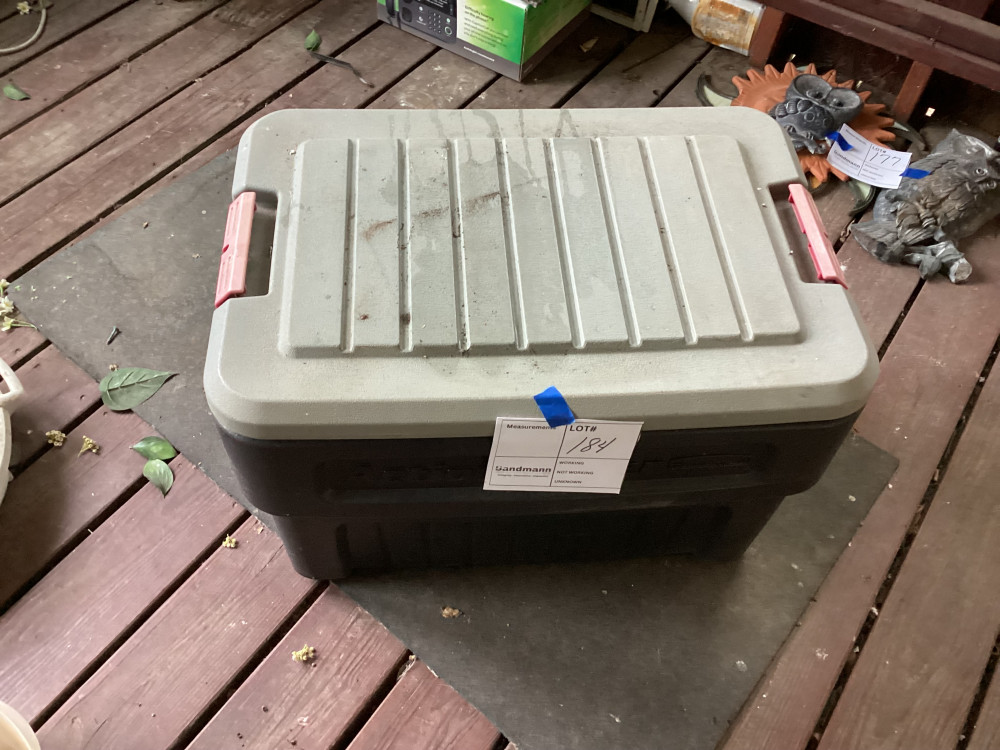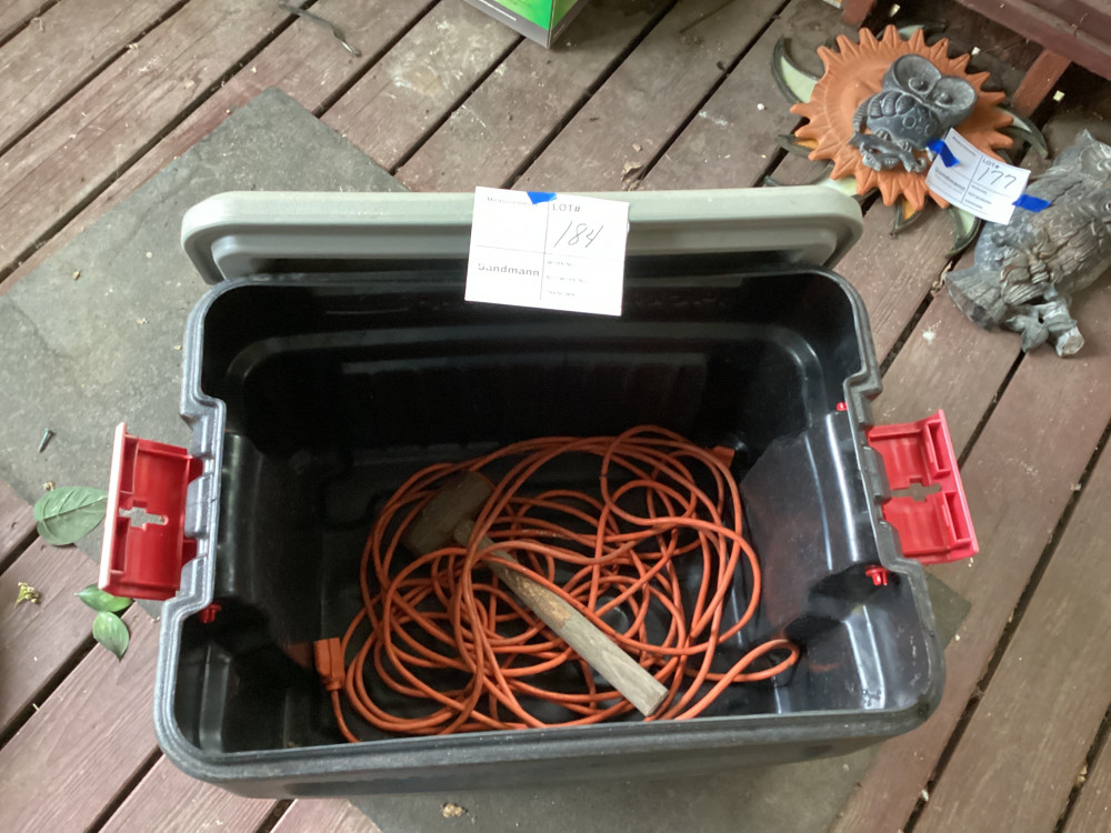 black tote with a lid and an orange extension cord