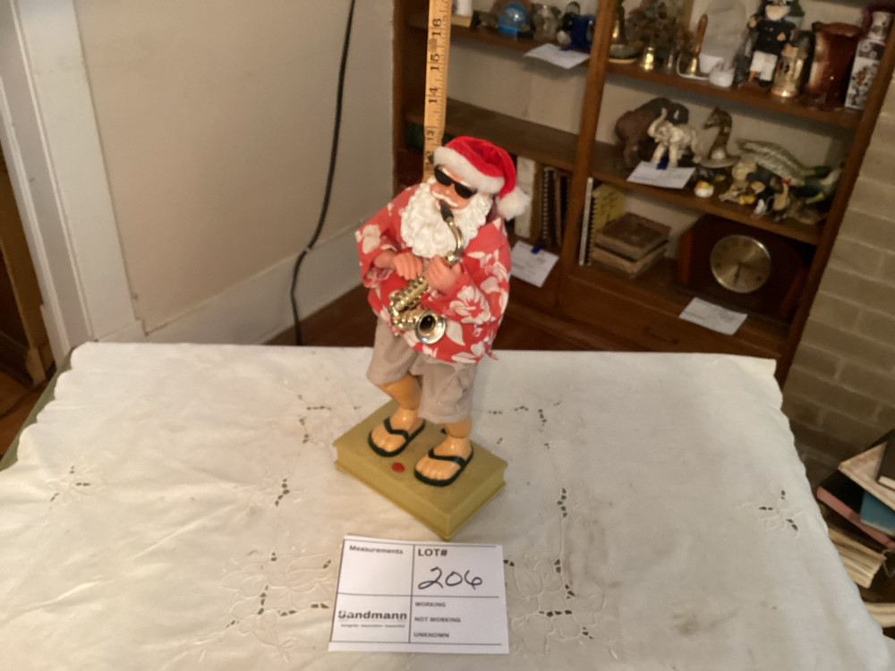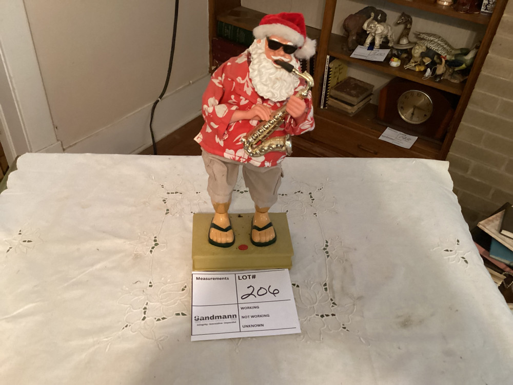santa figurine playing a saxaphone