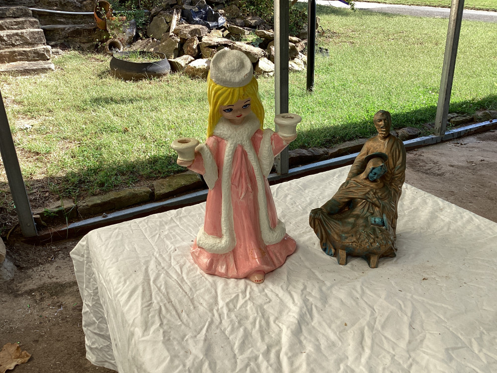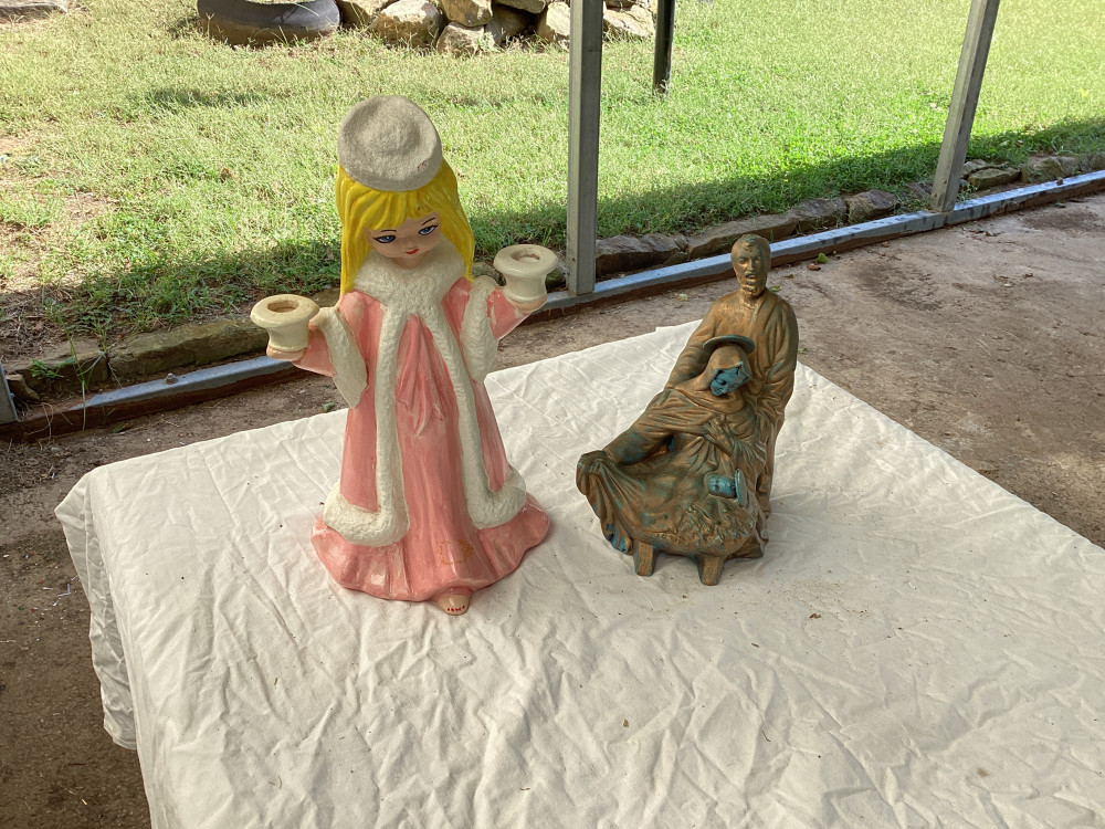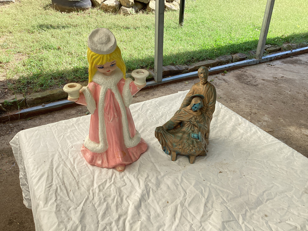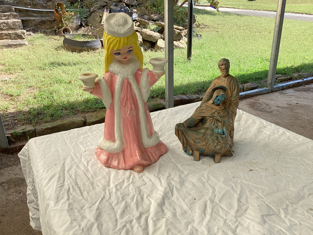Angel candle holder and manger figurines (#418) Perona Trust; McAlester, OK