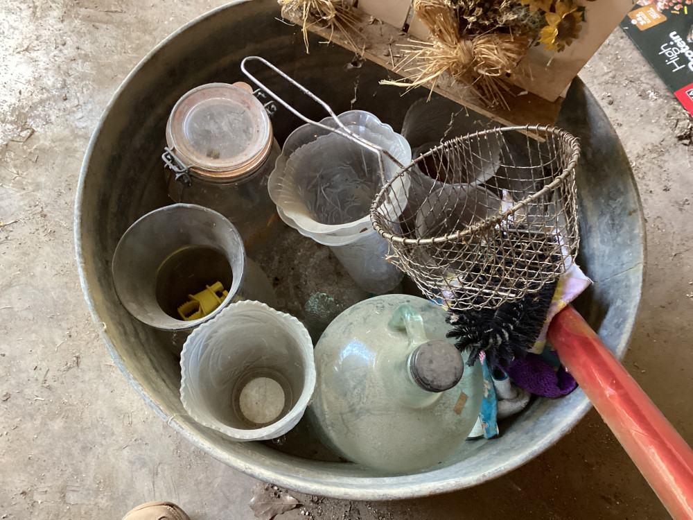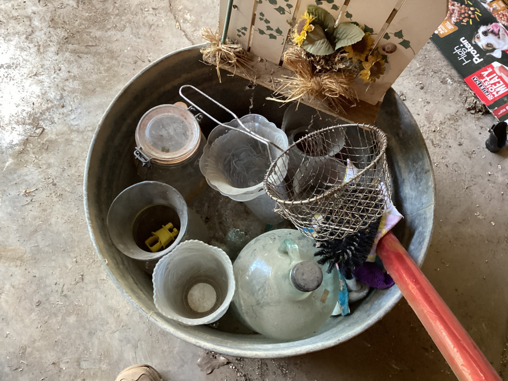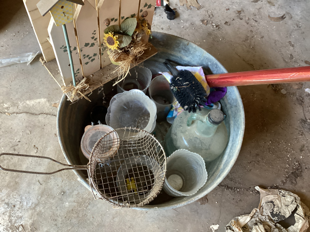 Bucket and glass jar (#497) Perona Trust; McAlester, OK